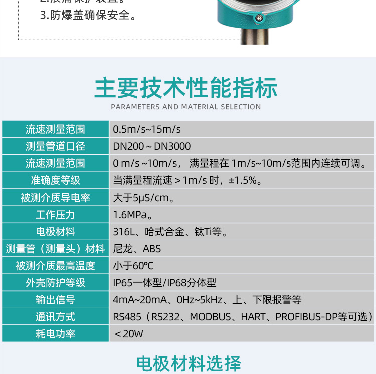 3. 寬量程適應性強:流速測量范圍0.5m/s~15m/s,口徑覆蓋DN200~DN3000,滿量程可調(diào)。