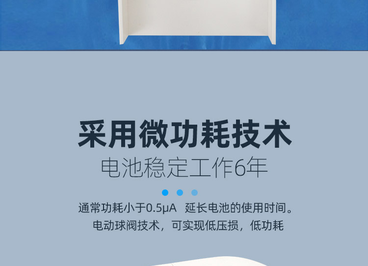 3.微功耗技術:通常功耗小于0.5μA,內置電池可穩定工作6年以上,壽命長。