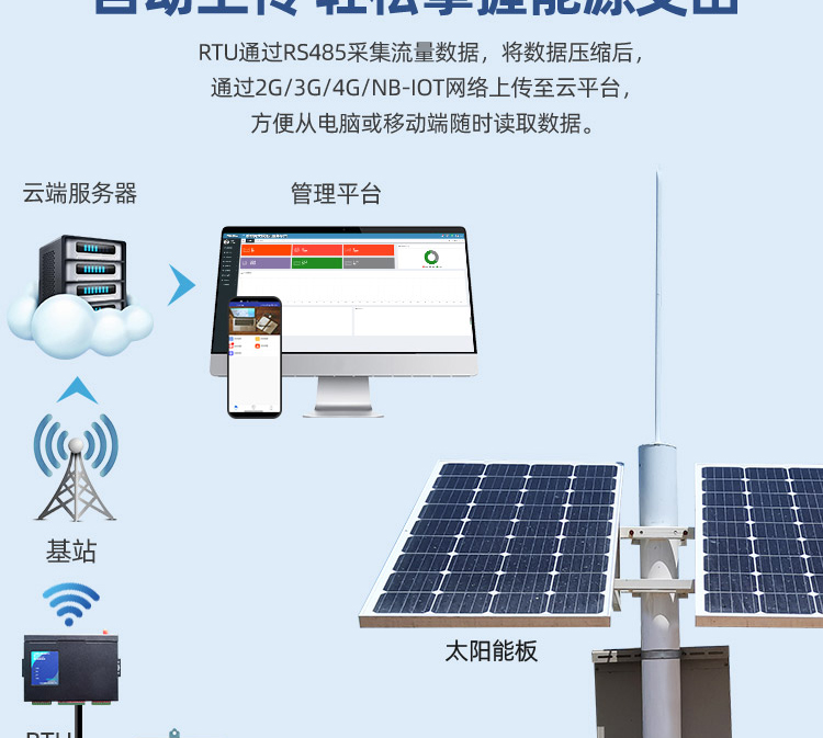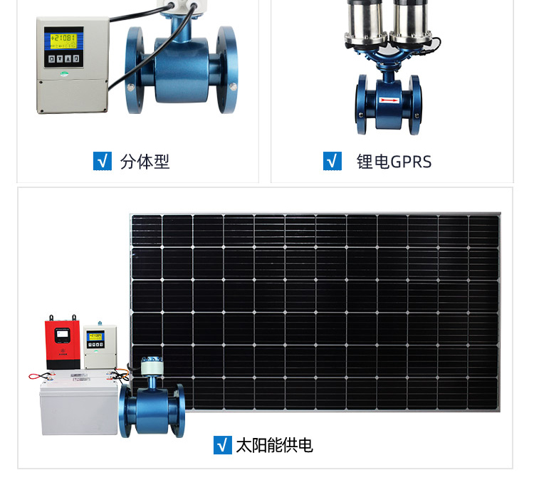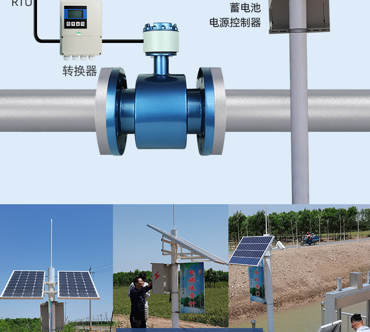 太陽能分體智能遠傳電磁流量計具有無線數據遠傳的流量計量和控制系統,主要應用于廠區、油田、農田灌溉和市政供水計量等無市電情況下的流量計量和控制
